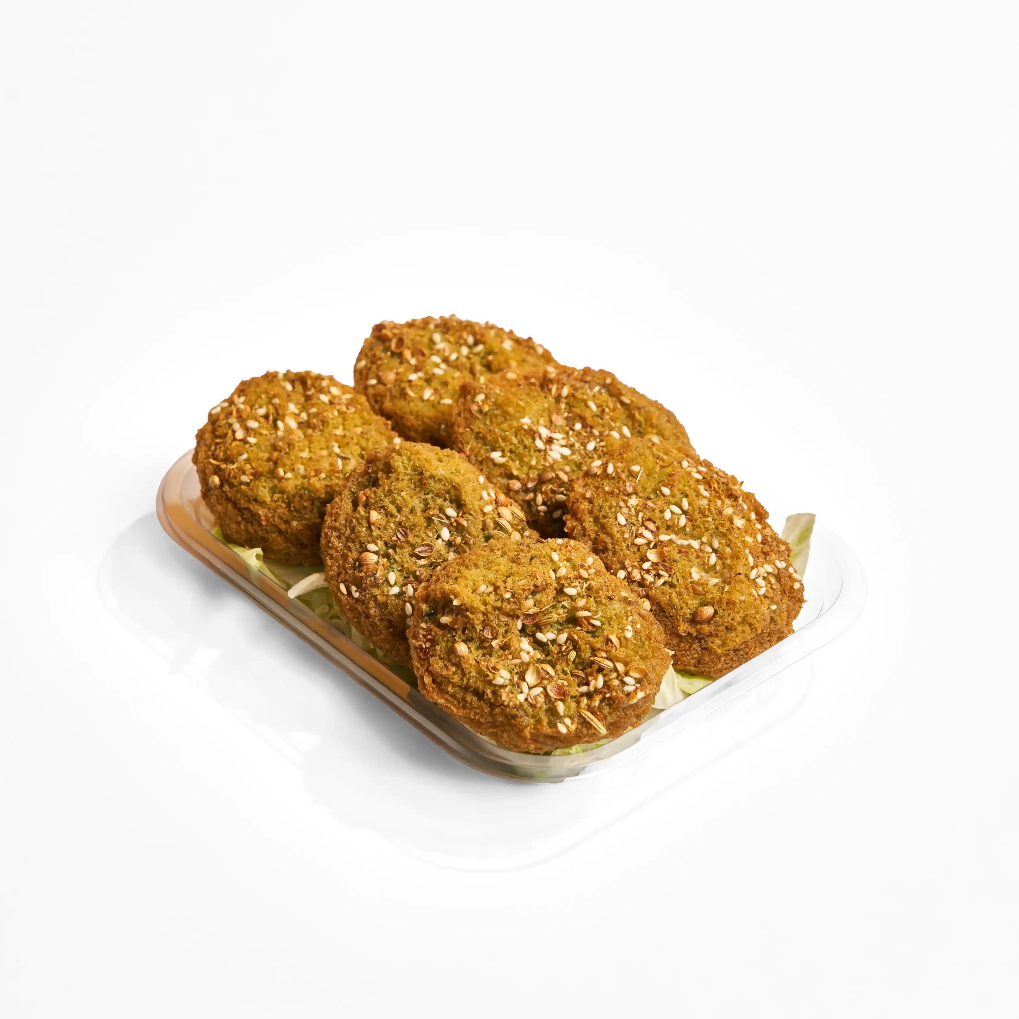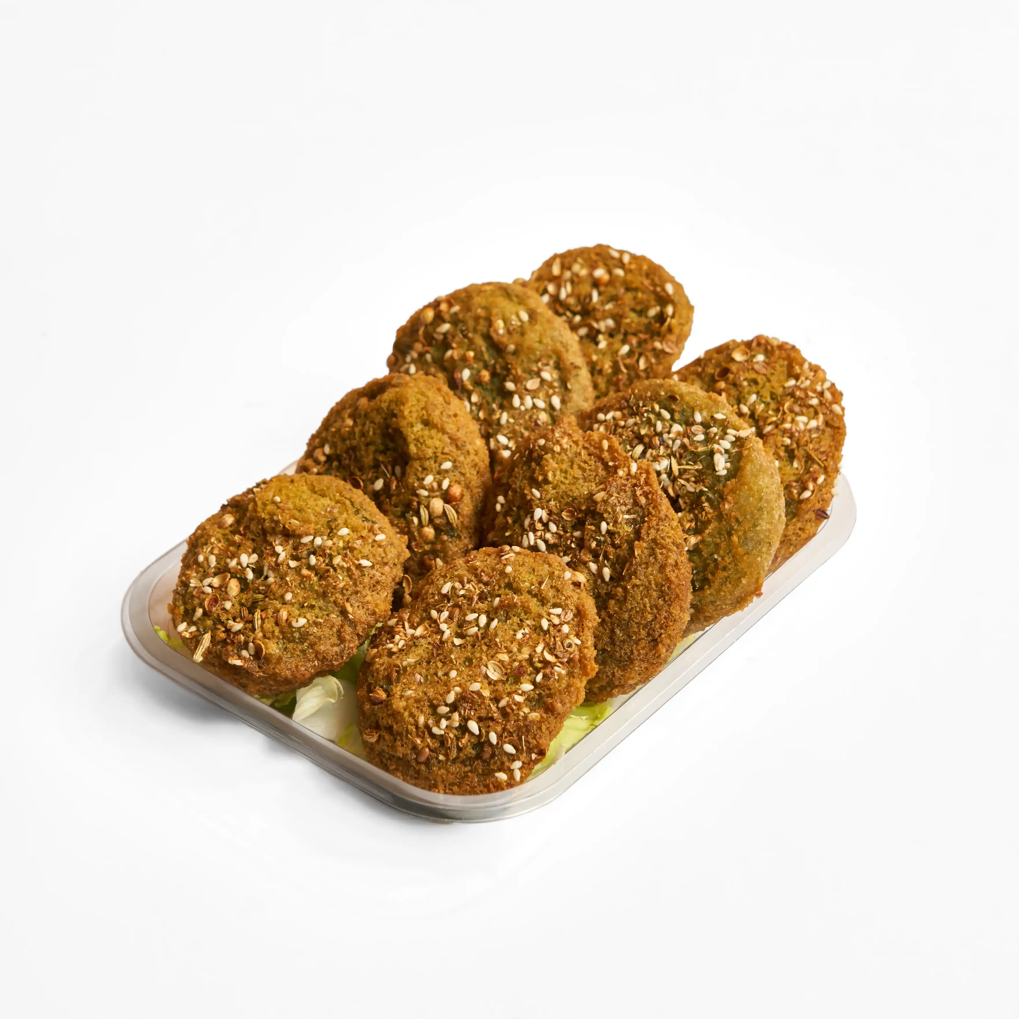 قرص طعمية سادة مقرمش من الخارج وطري من الداخل علية سمسم وكزبرة ناشفة