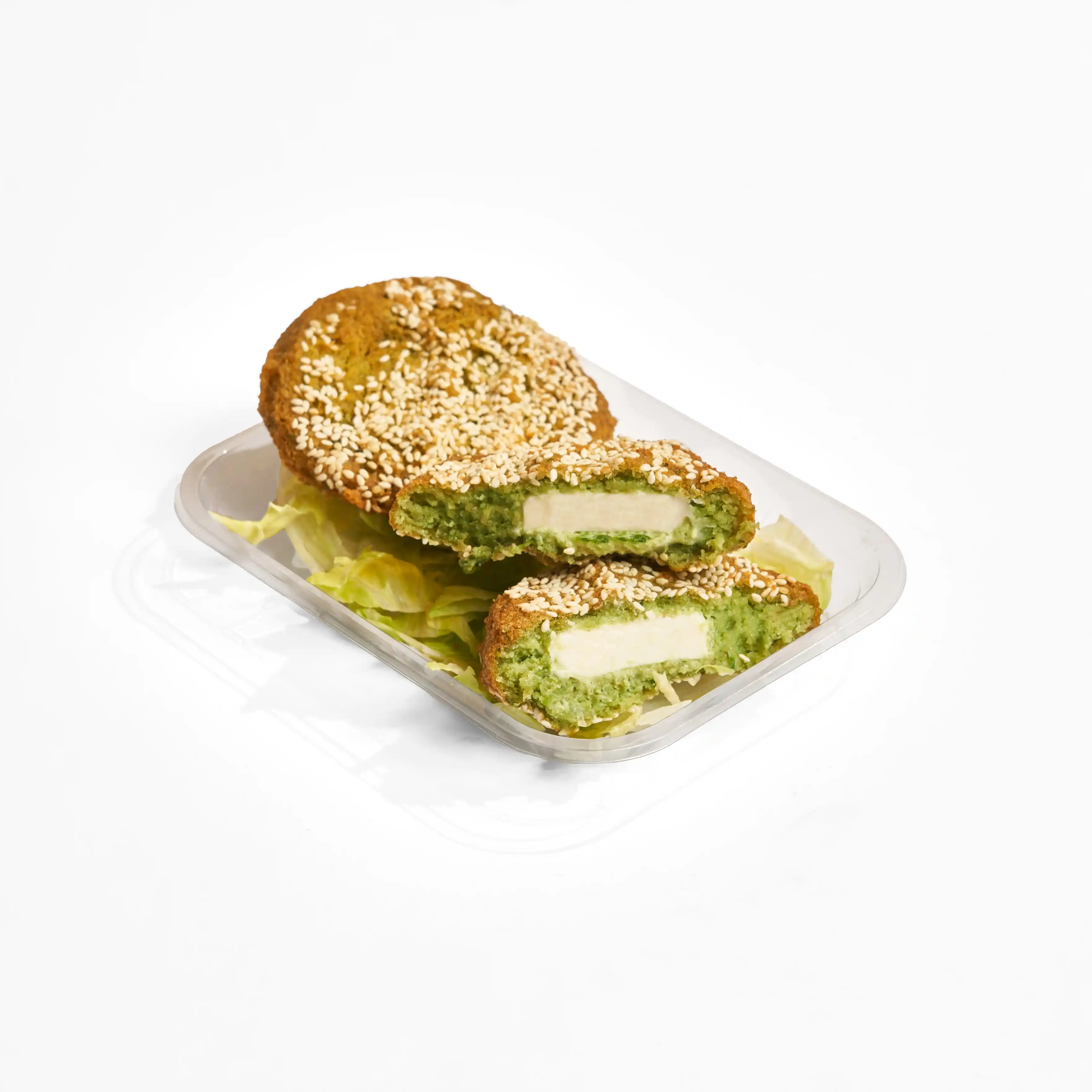 قرص طعمية مقرمش وساخن، محشو بالجبنة الكريمية اللذيذة من نوع كيري، ويعلوه شرائح طماطم وخيار طازة مع كابوتشي منعش لإضافة انتعاش وقرمشة في كل لقمة.