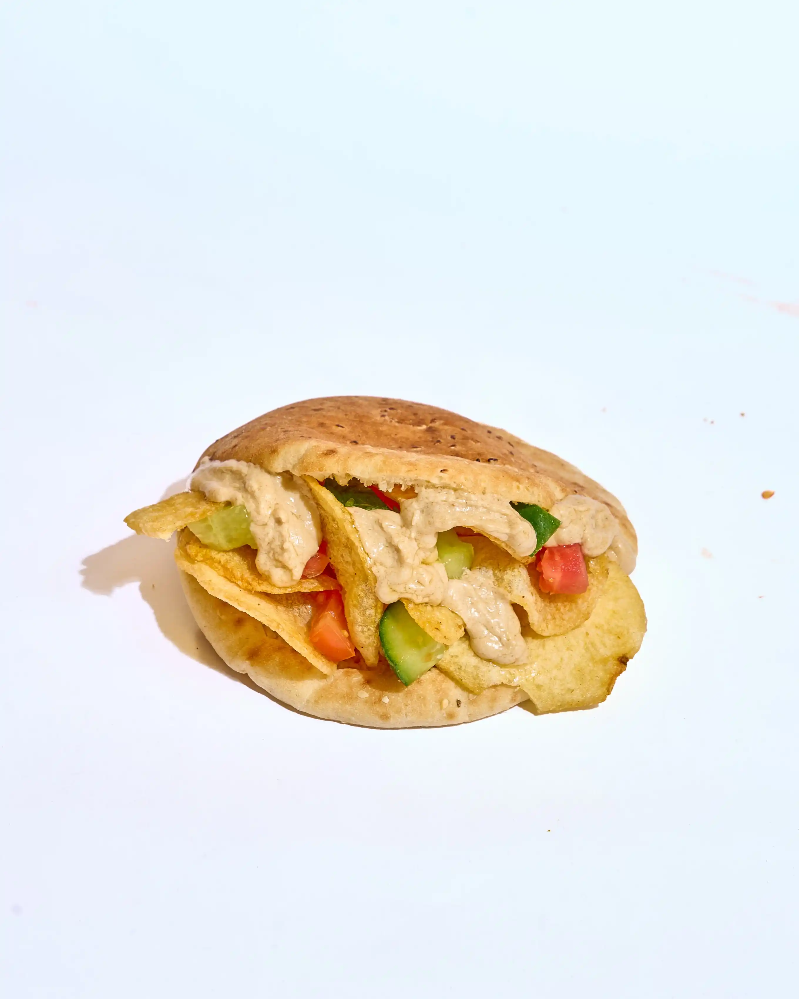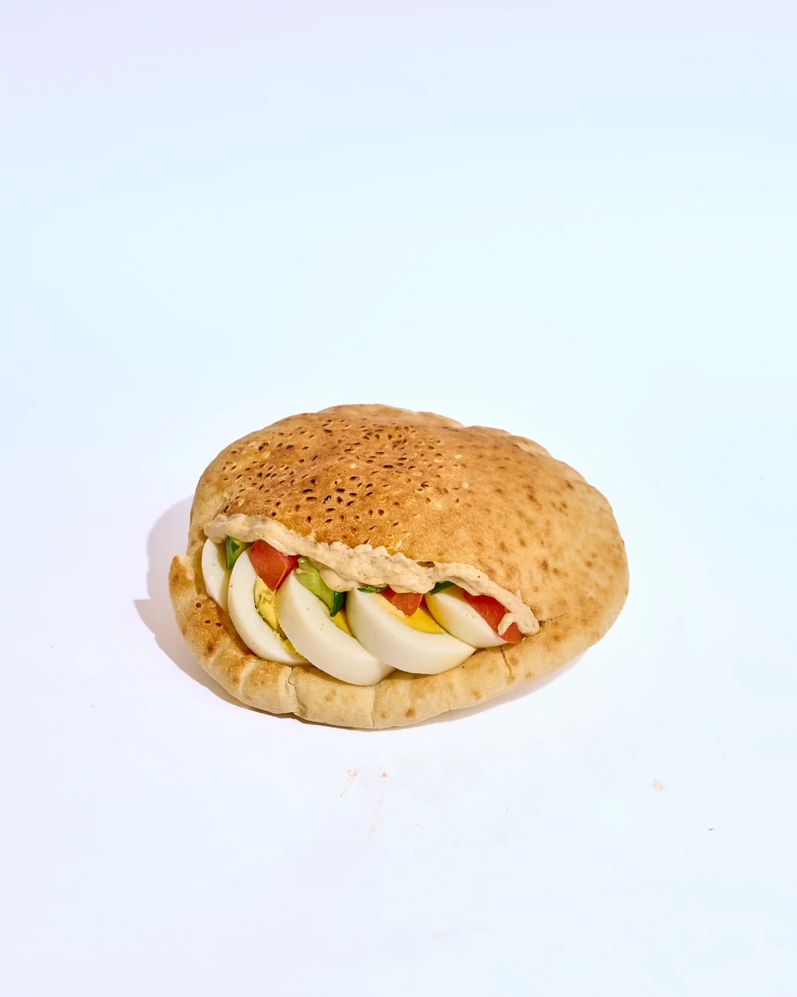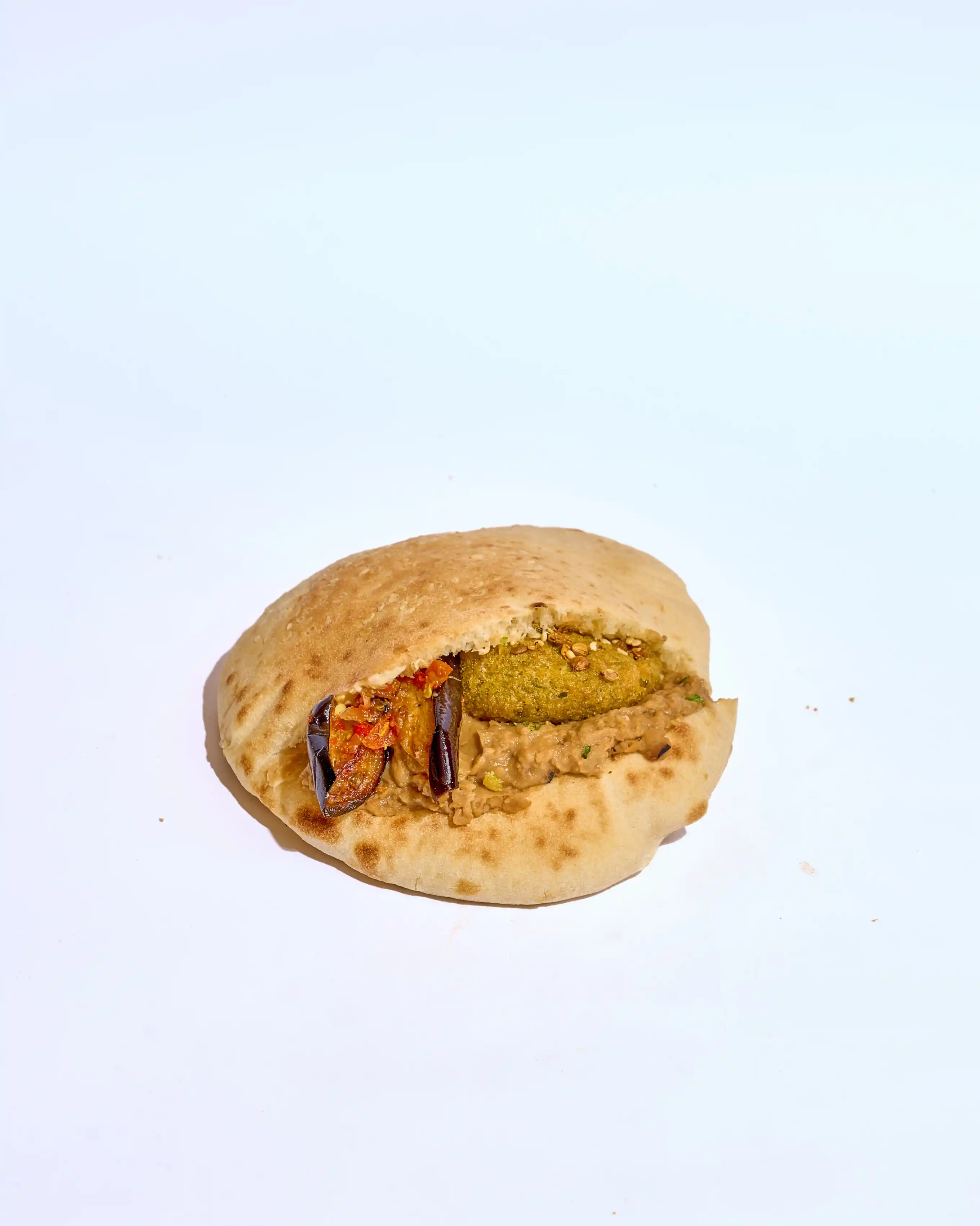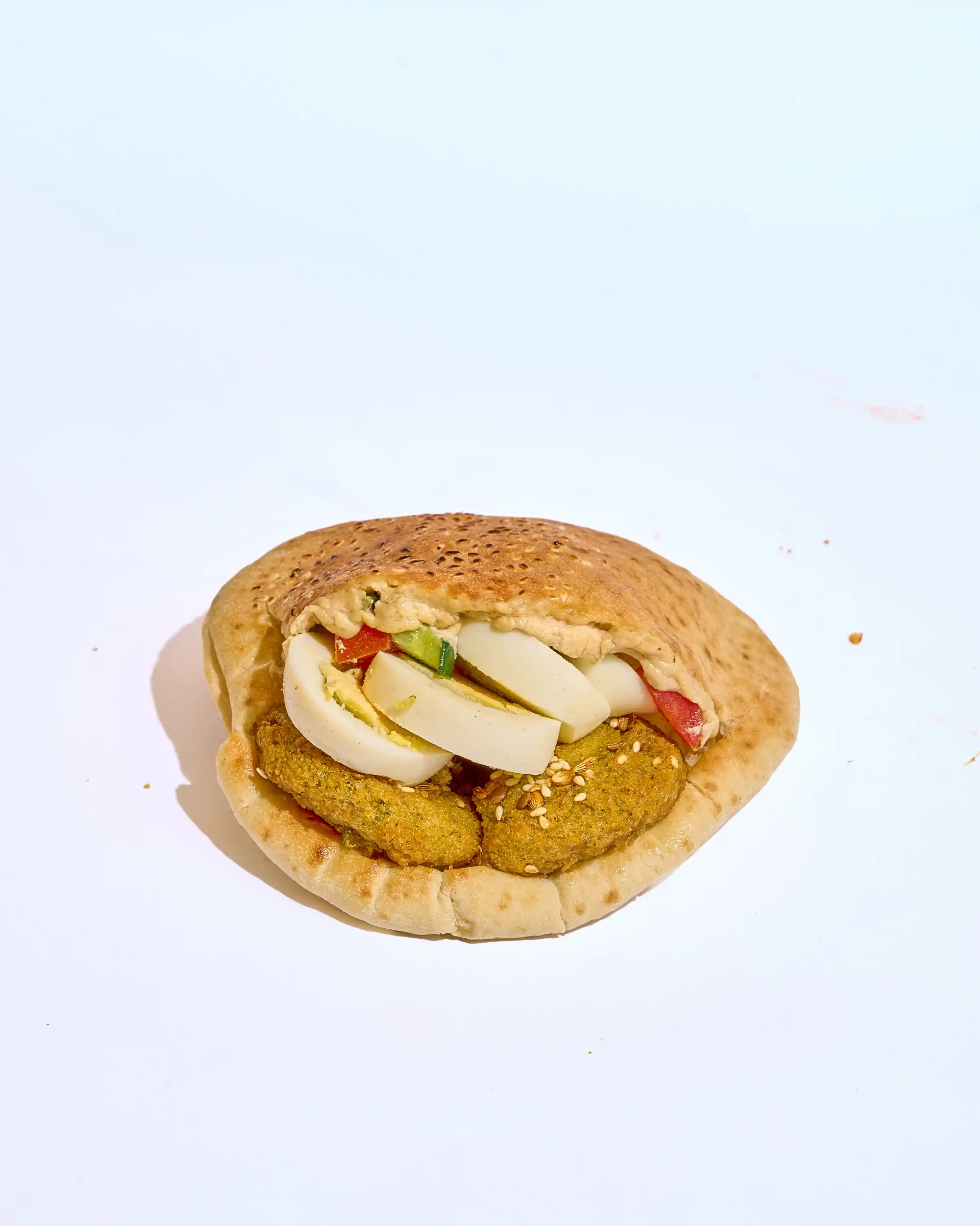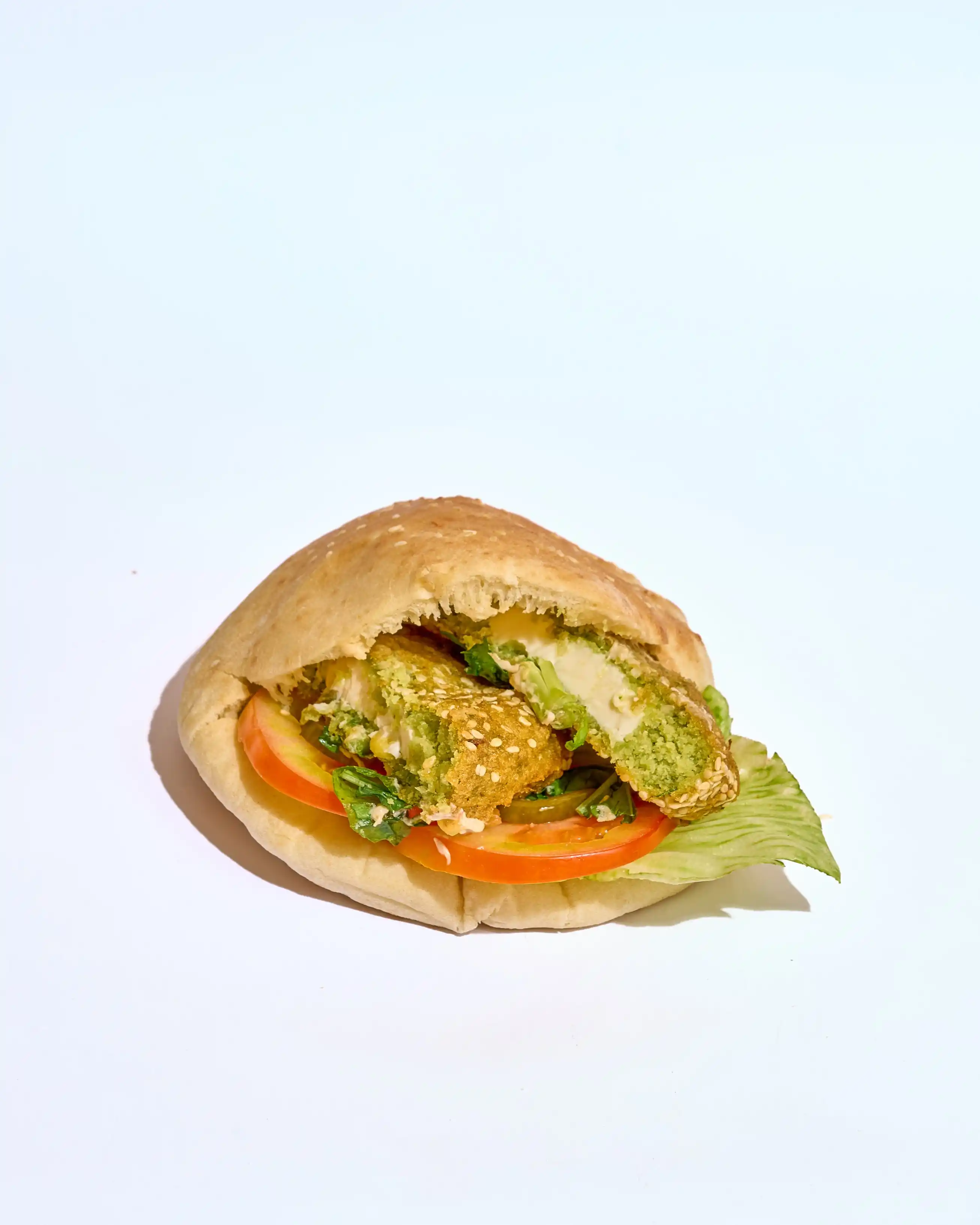 طعمية مقرمشة وساخنة، محشوة بخيار وطماطم طازة لإضافة قرمشة وانتعاش، مع كابوتشي طري ولمسة طحينة كريمية تغني كل لقمة بالنكهة الغنية والمتوازنة.