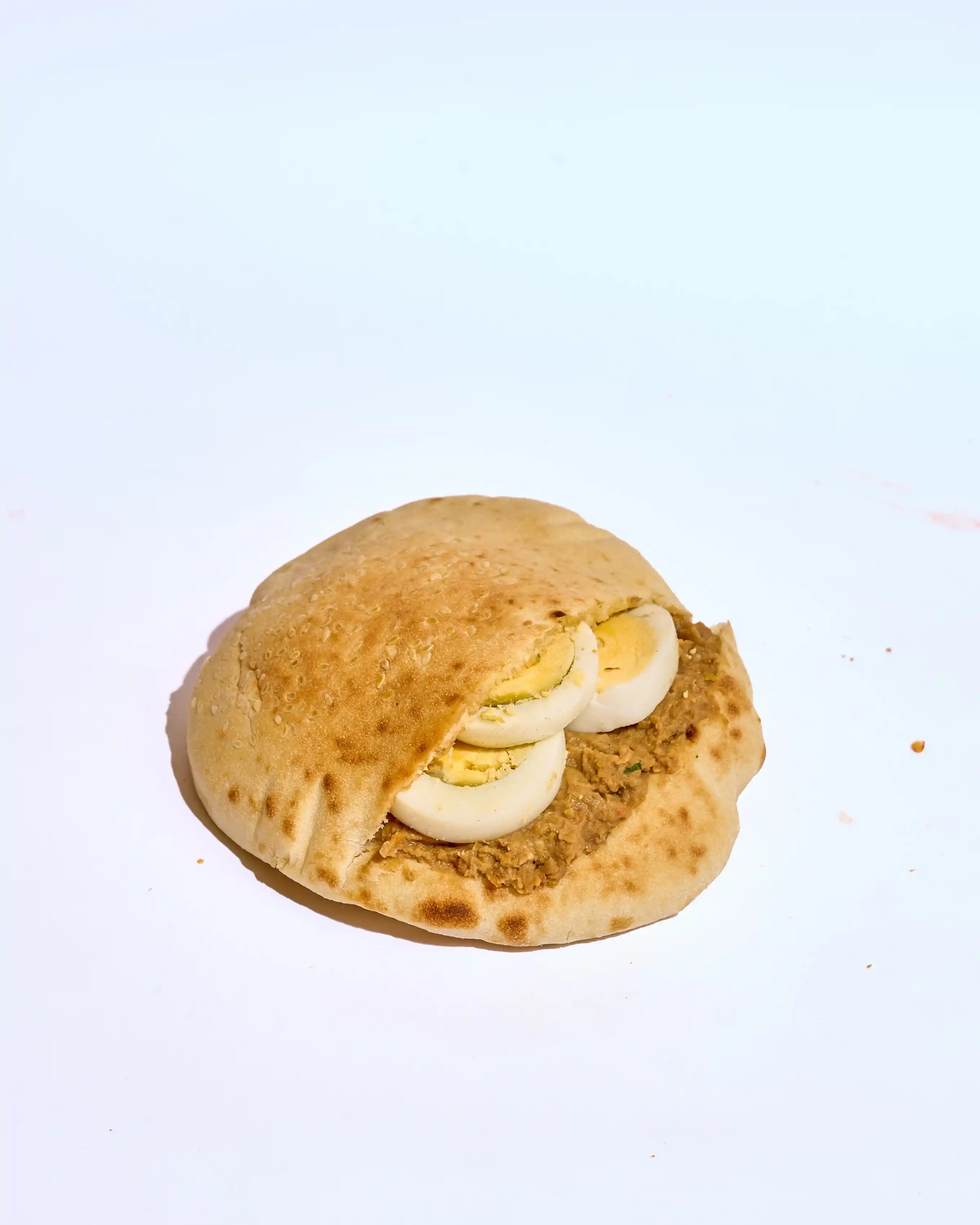 طعمية مقرمشة وساخنة، يعلوها بيض مسلوق طازة لمسة غنية بالبروتين، مع طبقة سلطة طازة وطرية ولمسة طحينة كريمية تزيد النكهة غنى وتوازن.