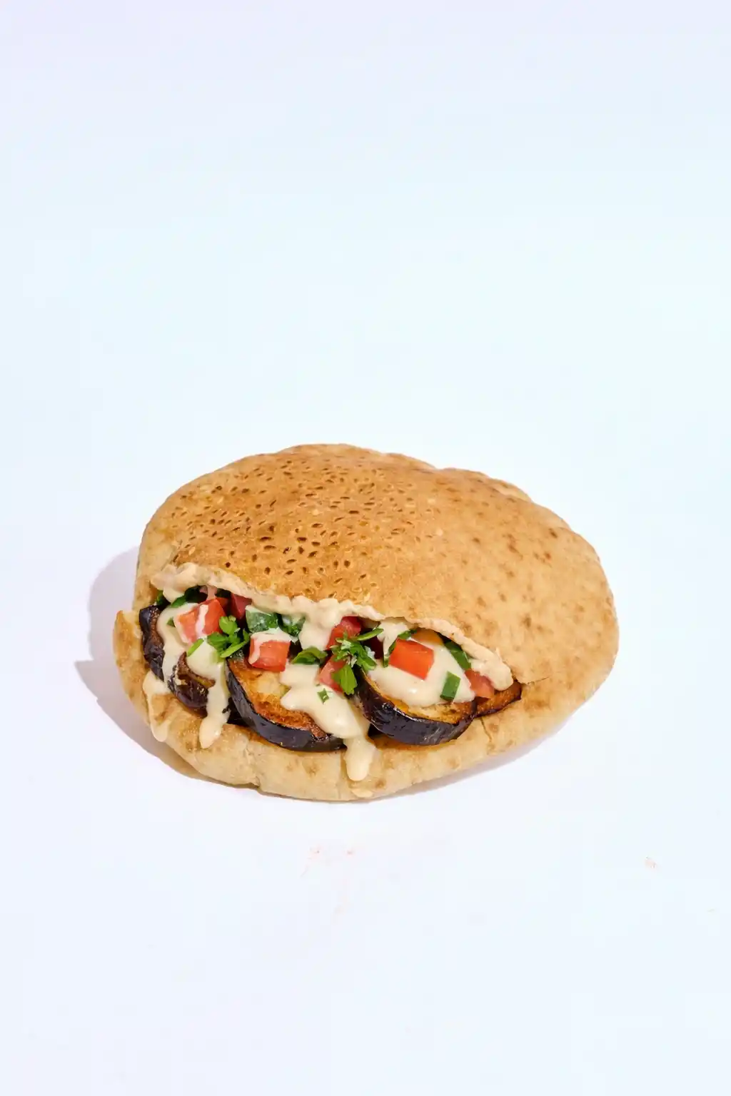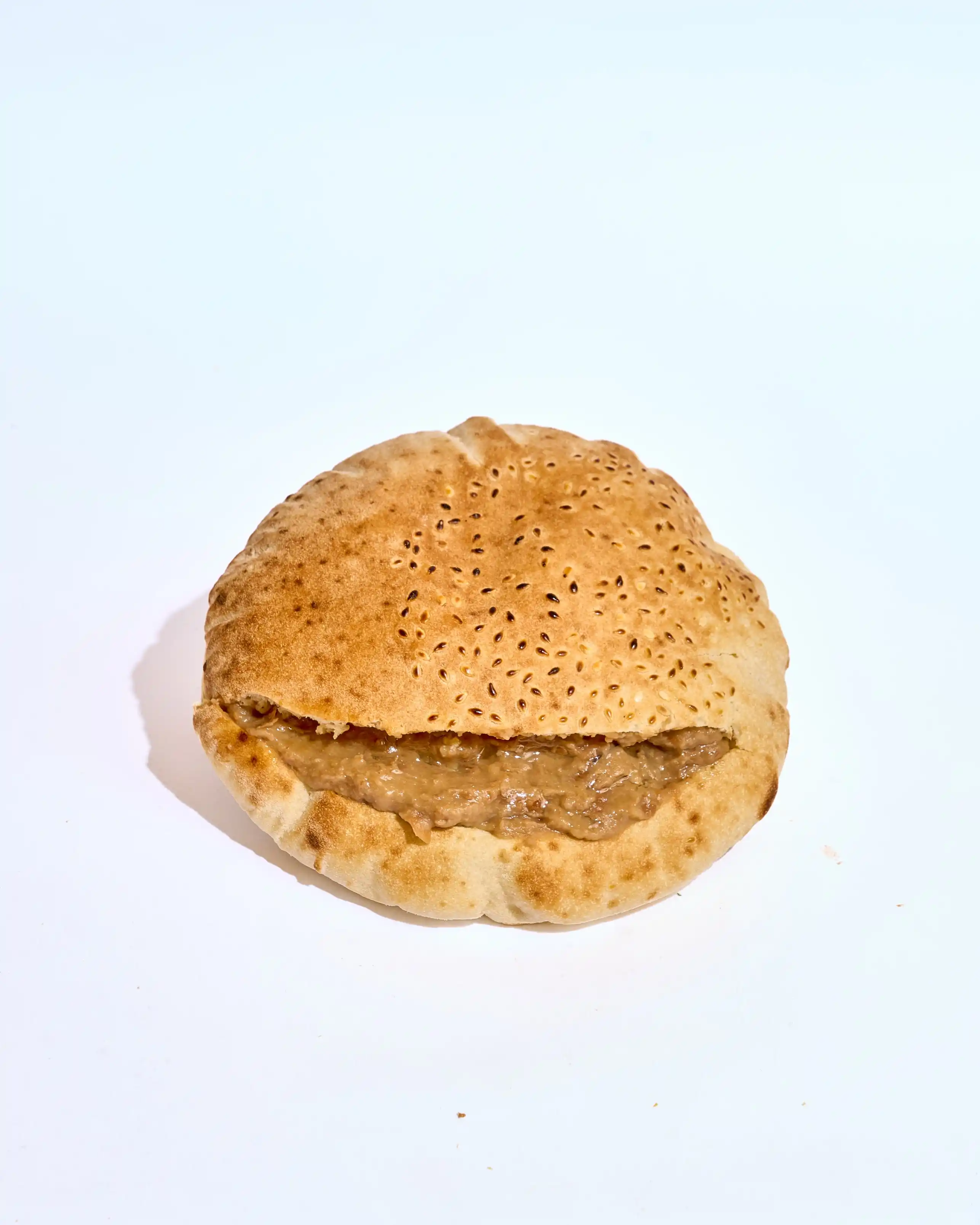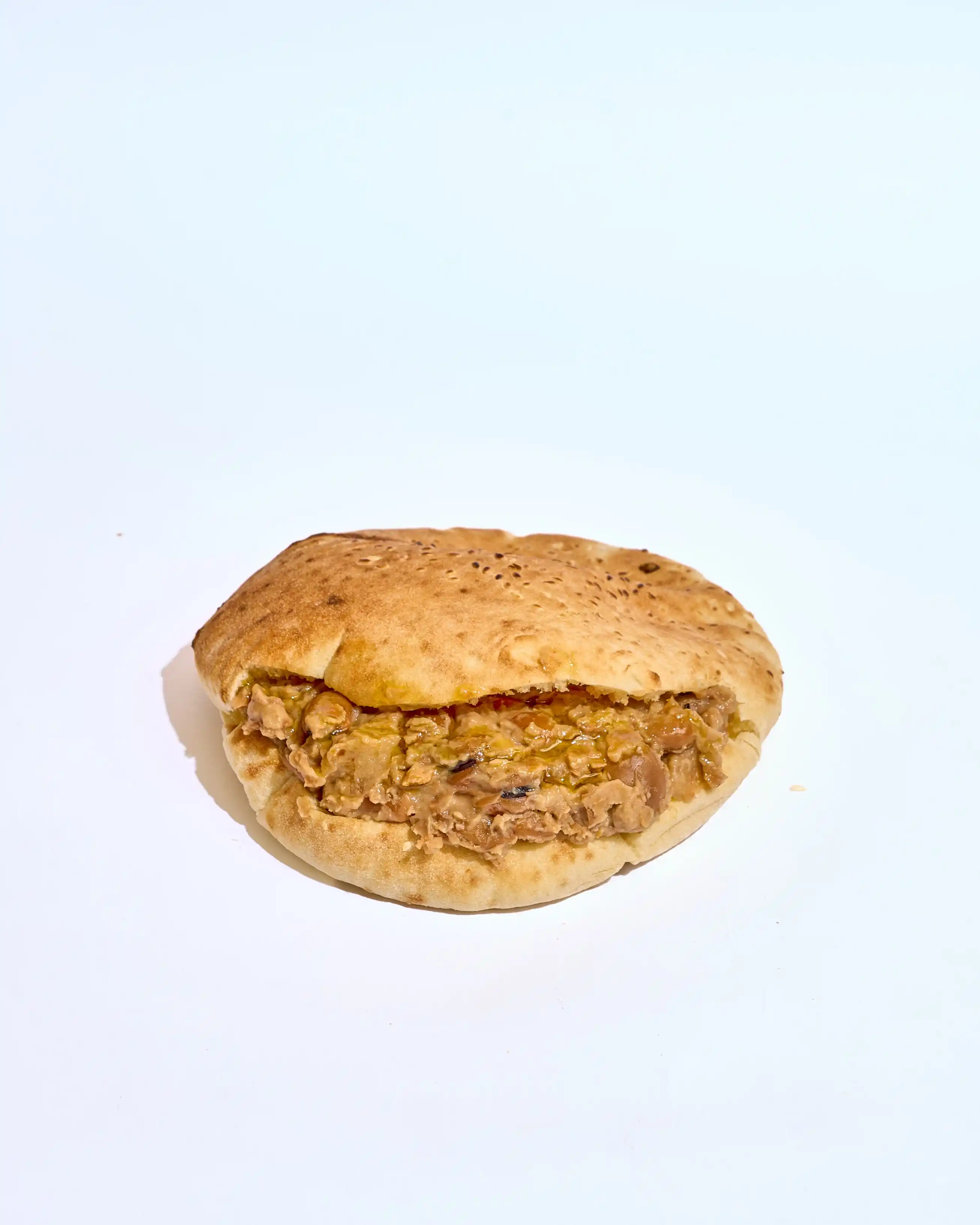 خبز طازج محشو ببابا غنوج الكريمي، مع لمسة من الزيت الطازج، ساندوتش خفيف ولذيذ بطعم شرقي أصيل."