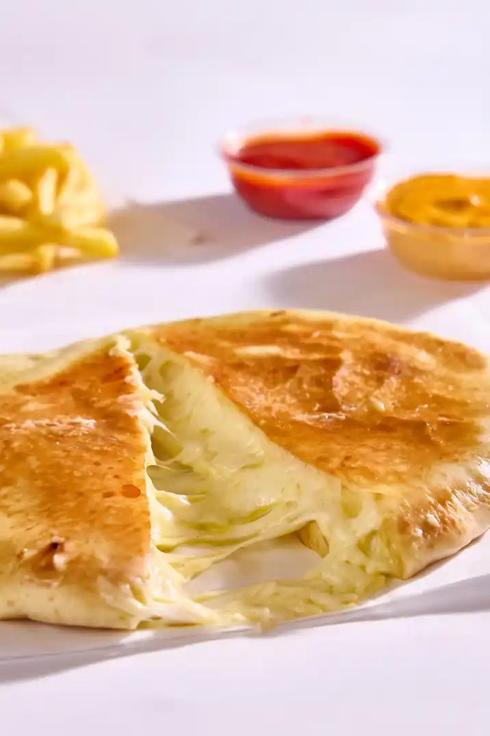 3 قطع من الجبنة المقلية الذهبية، مع شرائح الطماطم الطازجة، لمسة من المايونيز الغني ورشة كابوتشي لإضافة نكهة مميزة. رول لذيذ ومشبّع لكل محبي الجبن المقرمش."