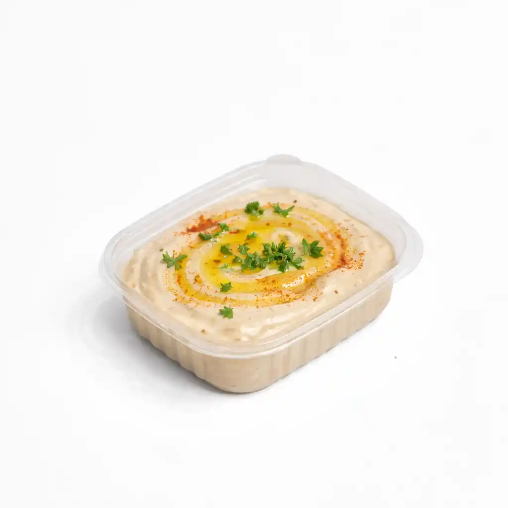 علبة حمص مطحون جاهزة للاستخدام، ناعمة وطعمها غني، مثالية للسندوتشات، الفطور، أو كطبق جانبي مع أي وجبة